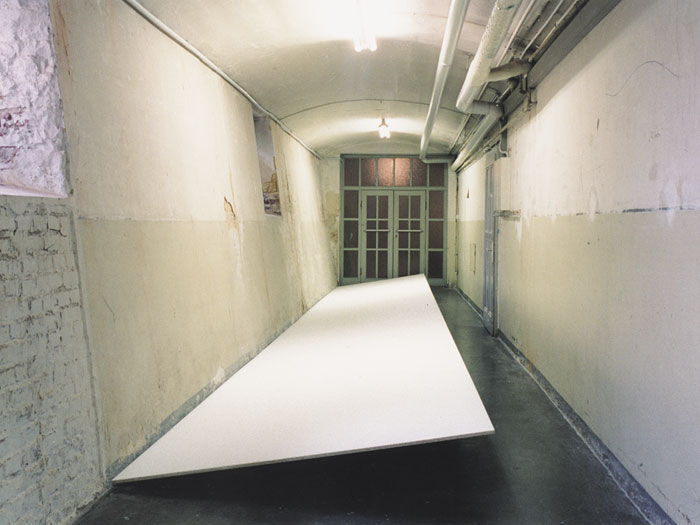 Schichtungen / Layers 1993 Holzplatte, Gips, Kasein, Pigment wooden board, plaster, casein, white pigment, 1263 x 180 x 40 cm,